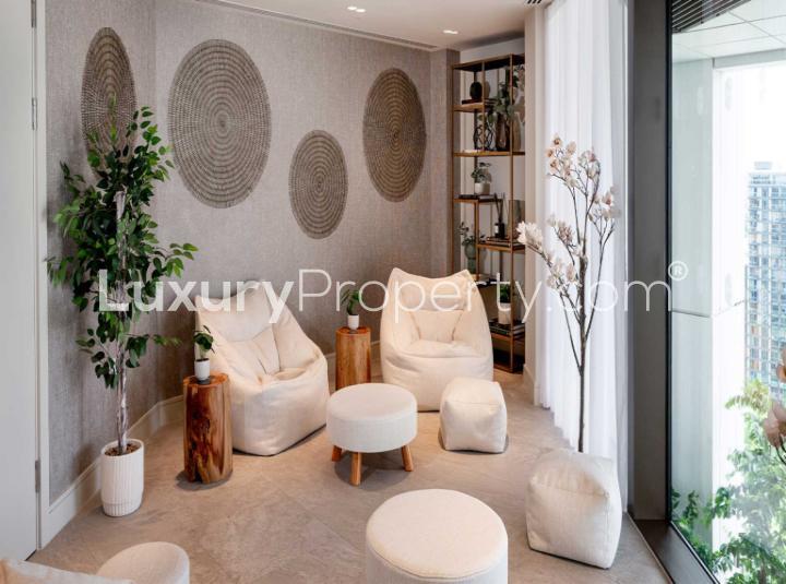 It's the lifestyle by Harcourt Gardens that makes living here so easy though. I mean, how often do you get to say you can walk out your front door and use a Bamboo Sanctuary with outdoor hot tubs and spa vibes just fifteen minutes from the City of London? It's tucked away on the 18th floor, and you almost forget how high up you are when you sit there. People use the space to get some quiet or just watch the breeze through the plants. If you need to work from home and actually get things done, you'll see a co working space on the 37th floor with some inspiring views. Sometimes I'll see someone reading a book instead of working, which is kind of nice. Then there is the screening room for movie nights and even a bar on the 56th floor. The views from there are breathtaking at night. You see the river curve away and the city lights up. It's one of the best places for an end of week drink with friends or just to enjoy London from above.