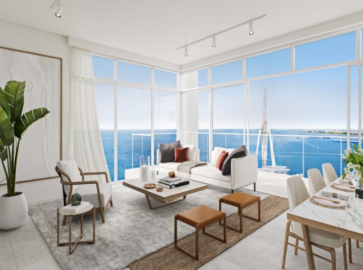 Some homes just have a certain way about them as soon as you walk in. I felt that when I saw this two bedroom apartment at Bluewaters Bay right by the water. You know how some places seem to just breathe a little easier maybe because of the sea air or the light I am not completely sure but it really comes across here. You can almost feel the city fading behind you once you step in and it is like the coast just calms you down a bit. The apartment is off plan so nothing is lived in yet. Everything will be absolutely new. Even just looking at the open living space you can picture your own furniture already like the spot where you might want your reading chair or where your morning coffee routine would play out while you look toward Ain Dubai.