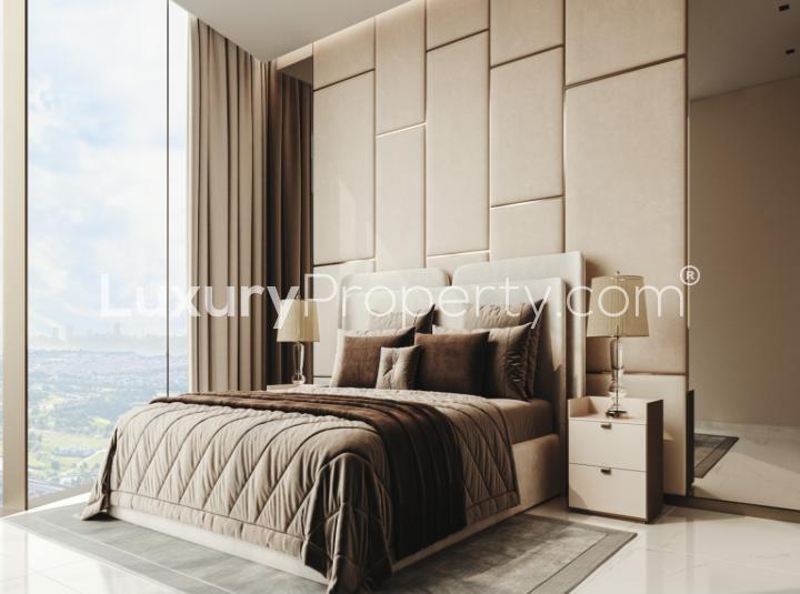 Presented by LuxuryProperty.com, this stunning off-plan 2-bedroom plus maid room apartment in Franck Muller Vanguard, Dubai Marina, spans an impressive 1,041 square feet, offering a perfect blend of modern living and luxurious design. This new launch presents an opportunity to own a piece of Dubai’s vibrant lifestyle, set within an iconic residence that embodies avant-garde aesthetics and timeless elegance. Every element of the Vanguard apartments is meticulously crafted to inspire and captivate, transforming ordinary moments into extraordinary experiences. The kitchen comes fully equipped with high-end appliances, ensuring that culinary adventures are both delightful and convenient.