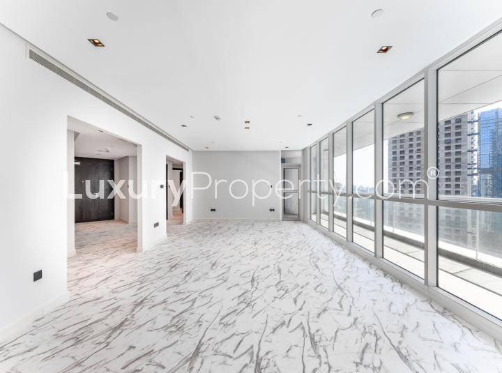 Some places just have a sense of calm the minute you walk through the door. This three bedroom apartment at 23 Marina in Dubai Marina surprised me right away. I remember pausing for a second in the entry just to let the sunlight spill over my shoulders. You get this gentle brightness all day from the floor to ceiling windows. Up here on one of the higher floors there's a way the sea catches your eye without it ever demanding attention. You see the blue and the city at the same time.