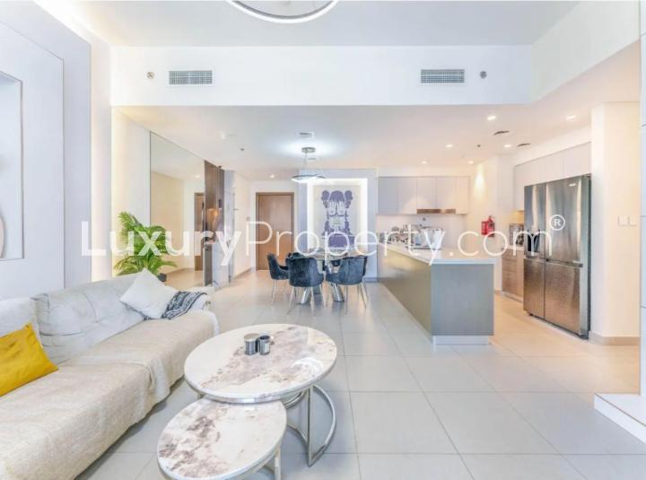 Sometimes you can tell the difference the moment you walk in. This three bedroom apartment in Forte Tower 1 Downtown Dubai does that to you. The floor to ceiling windows pull all that light in and you just end up standing there for a while watching the Burj Khalifa and the fountains. Honestly it is hard not to stare at the view and you might notice that the city almost feels a little quieter from up here. Everything is done already so you do not have to worry about furniture or appliances or running around Dubai looking for curtains that actually fit these huge windows. Everything is in place including a proper laundry area that actually makes sense if you live here full time and not just for a couple of days.