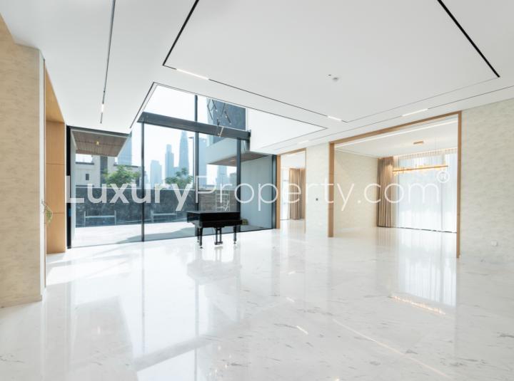 All through the villa you will notice these elegant extras like chandeliers, Sahara Glass details and wall cladding that makes the light feel different in every room. Some terraces give you a peek at the Burj Khalifa especially when the sky is clear. As evening sets in you might spot neighbors heading out or kids biking along Al Wasl villas. It always feels both private and like part of a real living community.