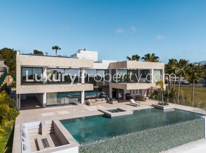 Some homes just have a way of making you slow down as soon as you step inside. This modern five bedroom villa in La Alqueria honestly gave me that feeling. One of those days where the light comes in just right and you catch yourself standing by the window just taking in the whole view. Out here in Benahavis you get the mountains rolling in the background and the golf course stretching out below plus a lake that always catches the sun at the end of the day and you even catch a hint of the Mediterranean in the right spot. Everything feels very calm and there are these pockets of quiet that are hard to find along the Costa del Sol.