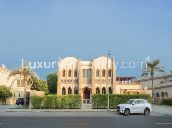 Some homes make you slow down at the front door before you even step inside. This six bedroom villa on a Palm Jumeirah frond does exactly that. The water sits still just beyond the garden and the skyline rests across the bay like a painted line. I stood by the glass for a moment and listened to the soft wash on the sand and it felt calm in a way you only get by the sea.