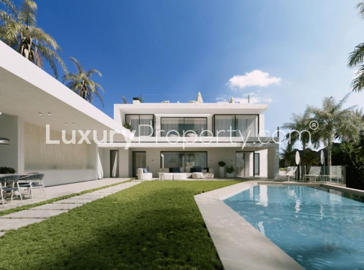 The outside area feels like a private little world of its own. The pool is big enough for proper laps or lazy Sundays, whichever mood takes you. If you get sunburned easily, the covered area on the terrace is perfect for a cold drink with friends without being right under the sun. There is a barbecue spot ready for summer evenings that just roll into the night. Kids can chase each other around on the big plot while you watch from the solarium and somehow the sea is right there but never too loud. Marbella life just moves at a gentler pace and being in this villa puts you close to everything that makes it special. You can wander to the coffee shop in the morning or drop down to the shore in the afternoon without any rush. Fine restaurants are nearby, and sometimes you see families heading out for weekend adventures as the sun goes down.