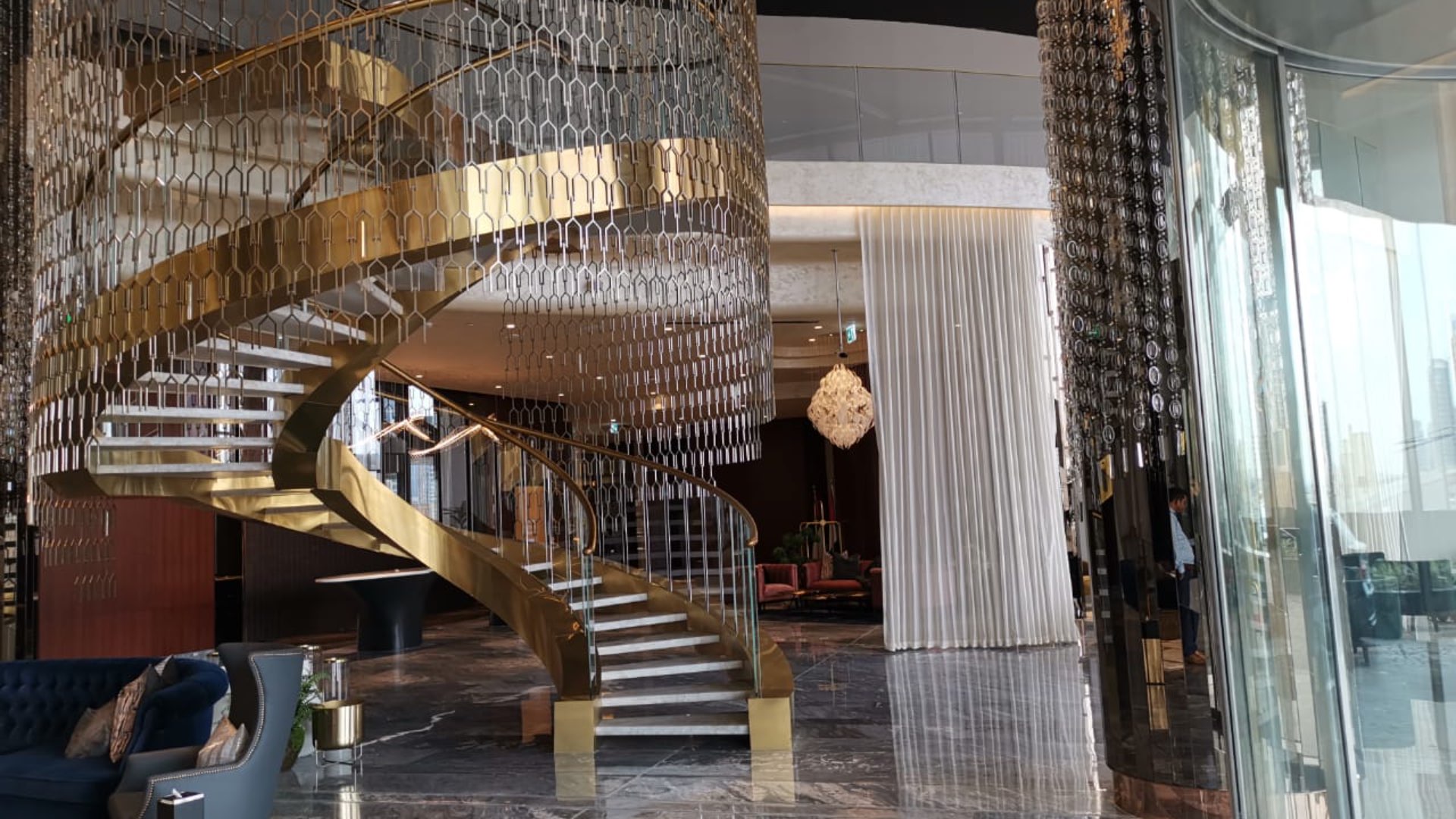 Some places let you step out of the noise and just ease into your own private space before you even open the door. That is really how it felt walking onto this full floor at DAMAC Towers by Paramount in Business Bay. There is something about this building. The elevator doors opened and it was just calm up there. You smell clean air and there is a little moment where the light catches those marble tiles and you know it is different from most other Dubai apartments. And this is no ordinary flat. We are talking about the whole floor. Seven big bedrooms waiting for whatever your life needs right now. Close to eight thousand square feet of space that wraps around you but never feels overwhelming. Each apartment on this level feels like its own home. You get off the lift and there is a hush that follows you inside. From the main corridor windows you look out and see the sweeping Dubai skyline and then the water down below flickering with sunlight. I remember leaning on that balcony railing for way longer than I meant to—sometimes it is just nice to watch the city doing its thing from up high without needing to check your phone or think about work.