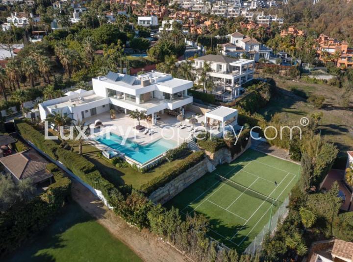 Some homes just have a certain ease about them as soon as you step indoors. Honestly, the first thing that hit me in this seven bedroom villa in La Cerquilla Nueva Andalucía was a kind of calm. You look out and there is the Mediterranean stretching off in the distance and La Concha mountain close enough that you spot all its little details. The air above Marbella always feels softer up here. Sounds from the garden almost echo and for a second you forget you are so close to Puerto Banús and all the action.
