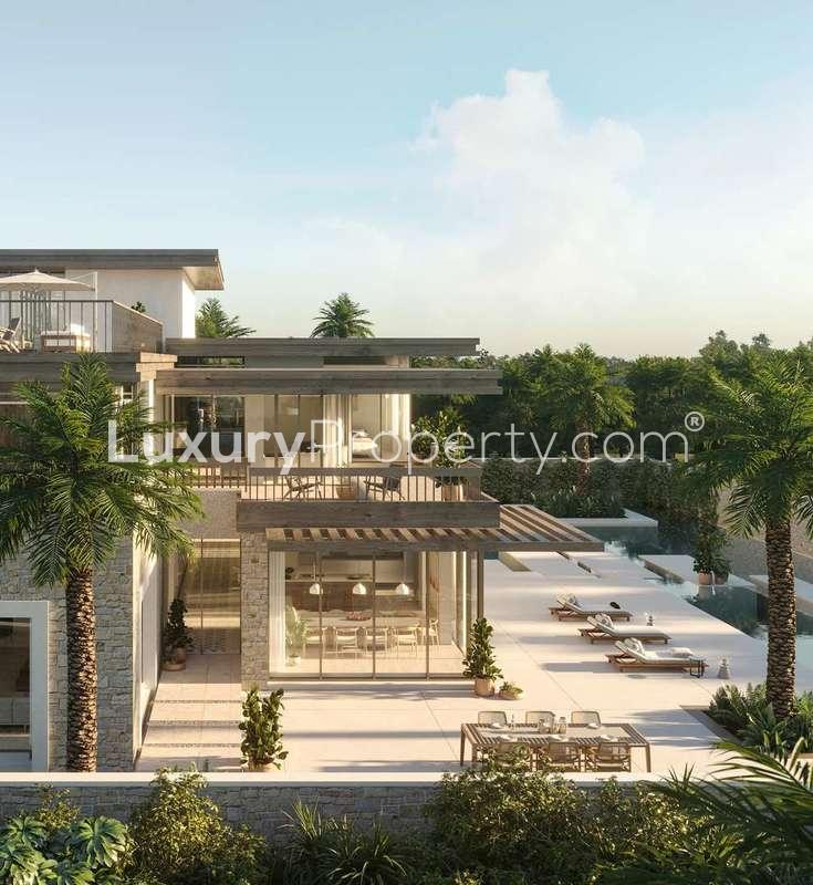 You will notice immediately that this villa just feels big from every angle, maybe more than eleven thousand square feet inside and an even larger plot outside so there is always space for everyone and even then it never feels cramped. The main living areas have these amazing tall windows that reach all the way up which really do change the mood every hour of the day, whether it is bright morning sun or just the last evening light turning everything gold. You can actually sit in the living room and watch kids playing in the garden or see someone paddling at the community's private beach in the distance. It just feels easy to let your mind wander a little.