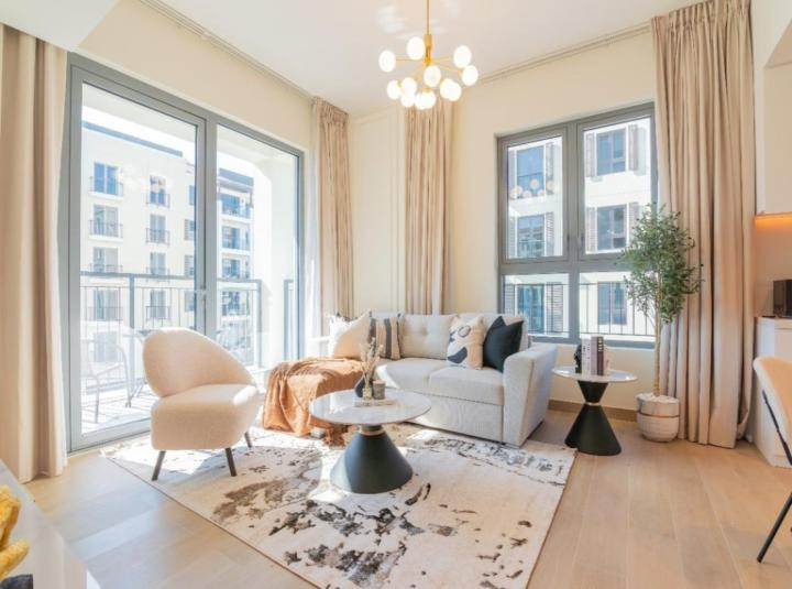 Some apartments just give you that feeling right from the doorway. That is what happened to me in this one bedroom apartment in La Voile at La Mer, Jumeirah. Soon as I walked inside there was this really easy brightness. The kind of light you hardly ever get in most Dubai apartments. I found myself just standing a minute to see how the sun stretched right across the living and dining space. Everything is furnished already and honestly if you showed up with your suitcase and maybe your favorite throw for the couch, you would be completely set.