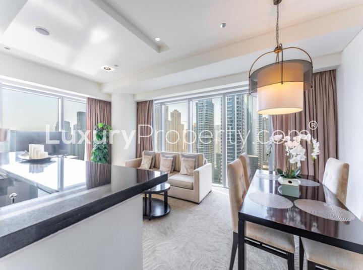 Some places just make you pause the second you walk in and this two bedroom apartment at The Address in Dubai Marina seems to know exactly how to do that. You get through the lobby which always has this busy hotel energy and then ride the lift up. By the time you reach the apartment the hum of the city and the marina below feels almost quiet. I remember just standing in the living room for a minute. These big windows open up the whole space and you get a clear full marina view straight from the sofa. You do not need to get up or step out on the balcony just to watch the boats float by or see the shimmering lights on the water at sunset. It is almost like the views are part of the furniture here.