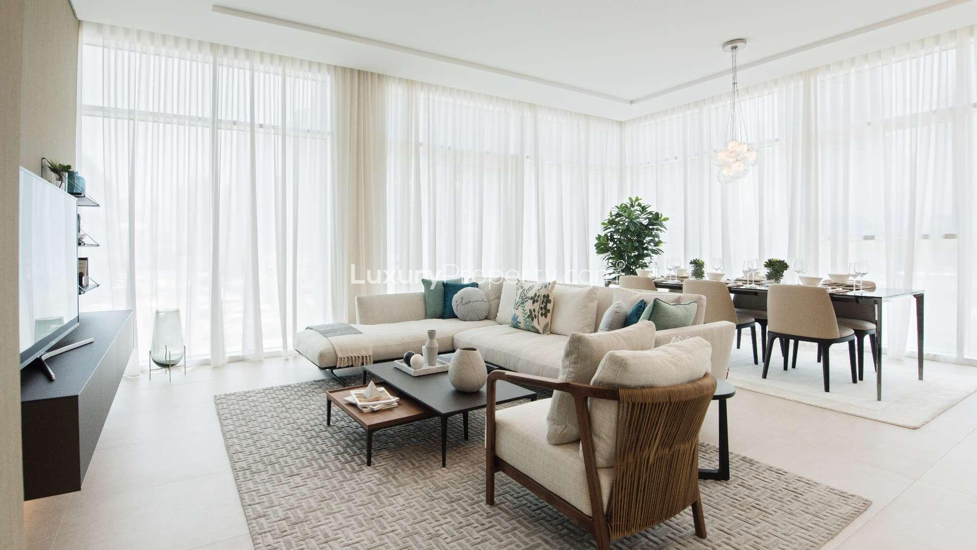 Some homes quietly settle you the moment you step in. This five bedroom apartment at Banyan Tree Residences Hillside Dubai in Jumeirah Lake Towers does just that. I spent a few peaceful minutes just walking through and glancing toward the garden. There was this feeling of space and calm that honestly you do not always get in the city. The light filters in from all sides because you have these four different terraces wrapped around you. You will probably notice yourself stopping to breathe in the greenery right out there beyond the glass.