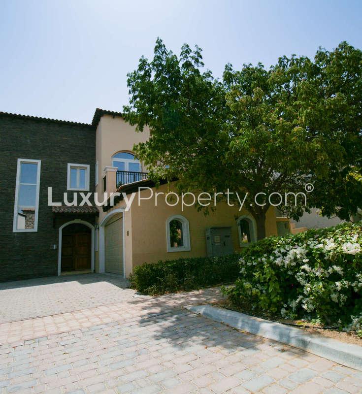 Every bit of this villa seems to be made for people who want comfort without showing off. There is a covered courtyard next to the dining area and it feels like a good spot for alfresco dinners, especially when you have friends over and the weather in Dubai is kind. The living area at the back opens up to the garden with patio doors, so it is all pretty seamless from inside to outside. That garden is well landscaped and has a swimming pool set far enough away that kids can run or you can set up a long dining table for a big meal.