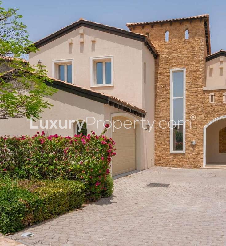 Some places just put you at ease the minute you walk in and this five bedroom villa at Sienna Lakes in Jumeirah Golf Estates did that for me. Even before I set foot inside I noticed how peaceful it is out here. The villa sits on a quiet lane with green park views right out the front. Honestly you hear more birds than cars. Families seem to end up in this part of Jumeirah Golf Estates for a reason. It feels a notch calmer but still very much connected.