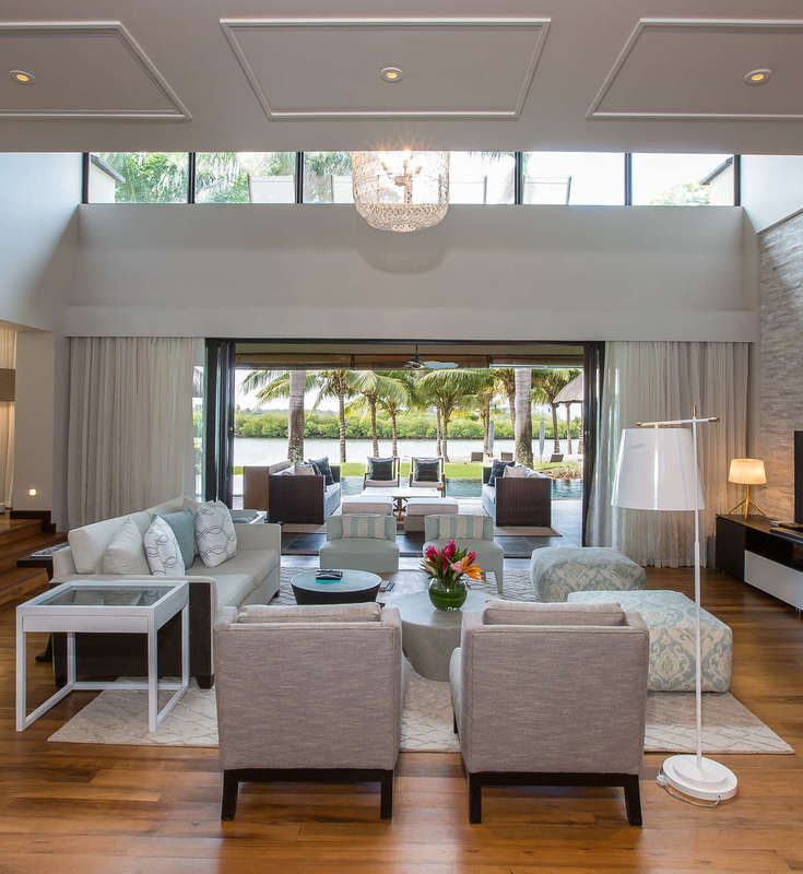 Some homes just have that feeling before the door even opens. This five bedroom villa at the Four Seasons Residences Mauritius at Anahita had me slowing down as soon as I walked up the little shaded path. The thatched roofs throw patterns in the sunlight. Palm trees lean over in the breeze and it is so peaceful you can actually hear the sea behind the property. Most places do not have that. You already sense the calm before you touch the key.