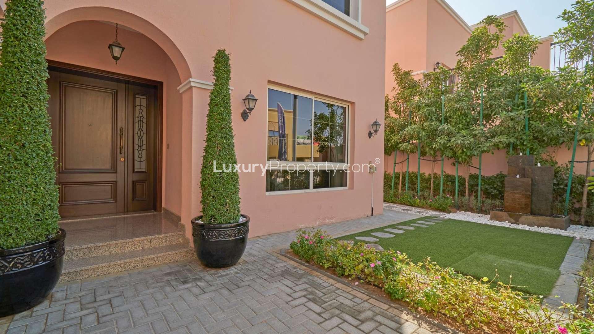 Some homes just make you slow down the moment you walk through the gate. This five bedroom villa in Nad Al Sheba 1 really has that feeling. I remember stepping onto the path with the garden on both sides and feeling like I wanted to take my time before even reaching the front door. There is this inviting calm outside, maybe because it is tucked inside a private gated community where there are not many cars coming and going or maybe it is just the quiet way the hedges rustle in the breeze.