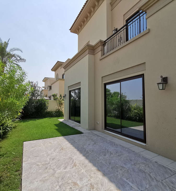 Some homes really do make you pause right in the entryway. This five bedroom villa in Palma at Arabian Ranches Two has that sort of feel. When I first stepped in the sunlight hit the hallway in a way that made everything look warm. There is just peace here. You can actually hear birds outside now and then. Sometimes that little breeze from the back garden finds its way into the living room.
