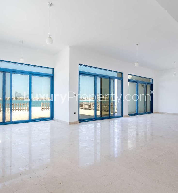 Some homes just slow you down right at the door. That is what happened when I first stepped inside this five bedroom villa at Palma Residences on Palm Jumeirah. For a place that is right on the beach, it feels almost tucked away, like you would not stumble across it unless you were supposed to be here. Maybe it is the soft white colors or the blue touches on the outside that make you look back at the sea before you even go in. On most days, you will notice how the whole community gently stretches towards the water, with the waves always sounding close even when you are upstairs.