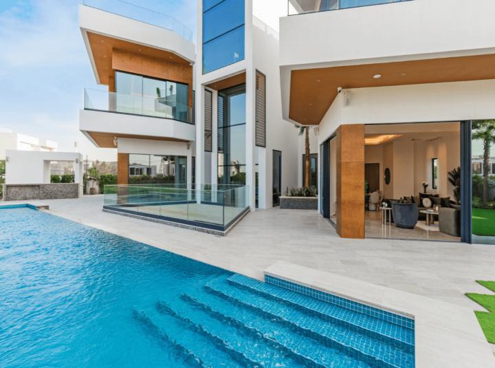 The home is fully furnished and you can see how much care has gone into choosing decor that matches the travertine and those creamy warm undertones. The colour scheme never really shouts and you almost do not notice it at first because everything just kind of blends. Sometimes you will find yourself slowing down just to notice it all. I spent a couple of minutes by the main living room window just watching a few birds in the grass and it made me think how even the busiest families might actually sit out in this garden. The pool is there too not just for the look but twenty two meters actually means you could swim some real laps if you wanted. Over by the barbecue area you can picture friends turning up for weekend lunches outside while kids drift in and out between the lawn and the deck.