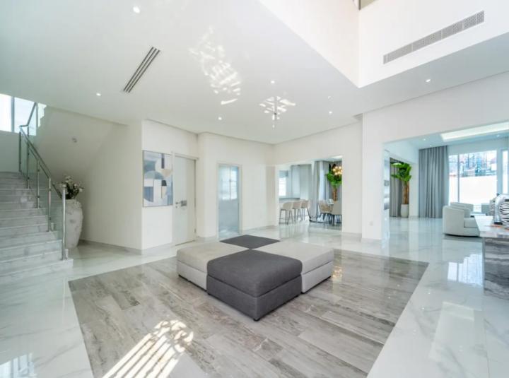 Some homes are just easy to walk into. I remember stepping inside this five bedroom villa in Pearl Jumeirah and almost forgetting to ask all my usual questions. The setting just changes your pace a little. Pearl Jumeirah has that slower rhythm you do not always find in the middle of Dubai. You might catch a trace of city sounds if you listen by an open window but most days it is the calm that you notice first. The private beach sits just around the corner and yet you can get to the heart of Jumeirah fast enough when you need to. It is that balance people look for but do not always find. Honestly it is rare.