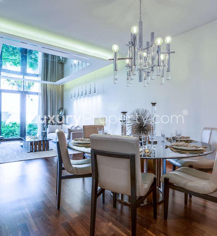 If you wander outside, there is this tidy pool in the garden area. It is private enough for a dip any time of day. The garden is landscaped but still feels like it could handle kids running around or a barbecue with a few friends. Sometimes you hear kids biking out on quiet evenings. You might even smell someone barbecuing if you are lucky. Upstairs, the bedrooms are all en suite, including the main suite with its own balcony. Standing up there, you get these pretty impressive views across the greenery and right towards the Trump International Golf Club Dubai. Honestly, the mornings up here feel lazy in the best way.