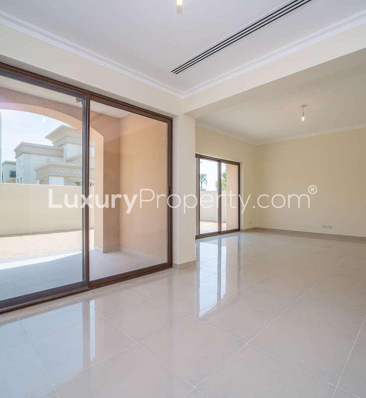 There are some homes where you just feel like you could spend a whole Sunday morning wandering barefoot from room to room before anyone else wakes up. That is kind of how it felt when I first walked into this five bedroom villa at Samara in Arabian Ranches 2. It feels open and easy going right away. The Mediterranean look from the outside brings a bit of warmth and a kind of timeless comfort. You almost imagine stepping out to pick lemons or sitting outside with coffee while the sun comes up. Then you step inside and it is modern in all the right ways but not in that cold magazine kind of way. Actually, the finishes remind me just a little of a real Spanish countryside home but with Dubai sunshine glowing through all those windows.