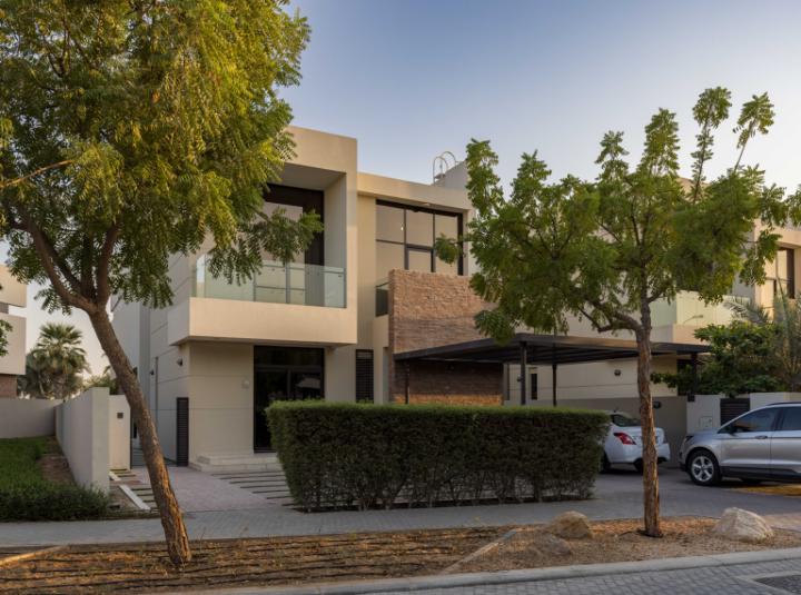 The plot is generous too just over six thousand six hundred square feet. The mature landscaping is the kind that did not pop up last week. There are green patches for kids to run or maybe even a barbecue going on weekends. At certain times of day you might catch the shadows shifting across the garden and there is always a small breeze drifting through. Not every place in Dubai gets that much fresh air flowing in but here it feels just right. Sometimes in the evenings you can see a few neighbours out for a walk or kids biking down the quiet roads.