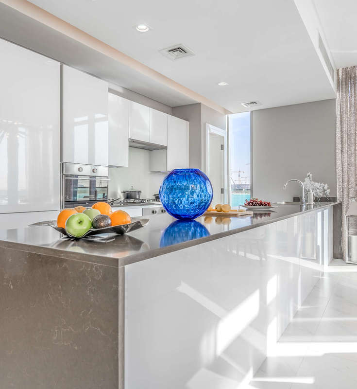 The living room feels generous even if you fill it with a ten person dining table and still have plenty of lounging space left over. Sometimes apartments can feel boxy and closed off but here the lines are just so open especially with how the partly open kitchen ties everything together. I notice the breakfast counter and think about mornings when you sit with coffee and maybe plan the day without any rush. This kitchen begs to be used it is not just for show and you will see all the storage tucked away so all your clutter has somewhere to go. Next to the kitchen there is a powder room for guests and tucked further along are practical spaces like the laundry and an en suite maid's room which actually feels private and comfortable. I get the feeling that families with regular help would appreciate how that is set up.