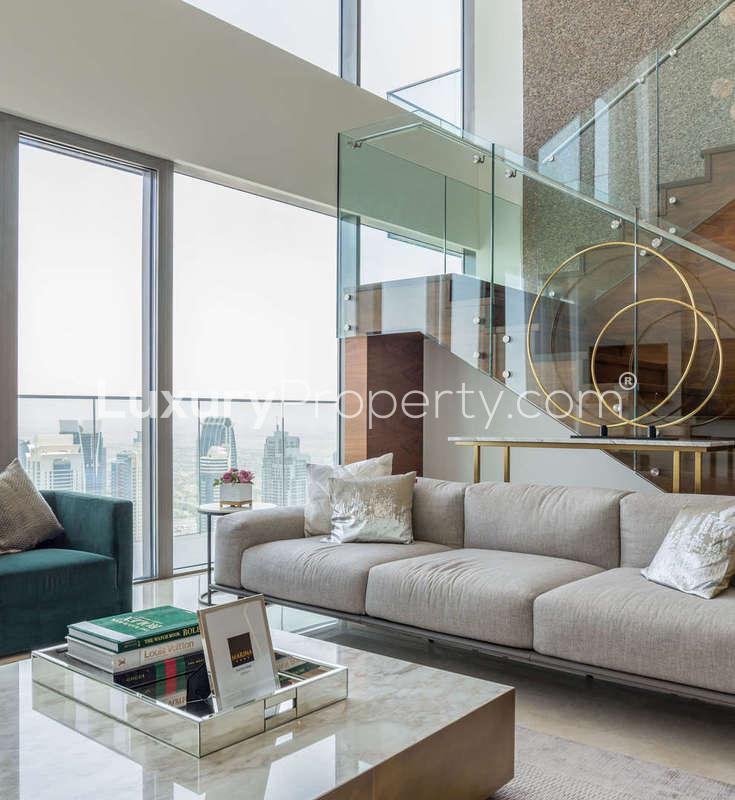 Some homes slow you down without even trying. That happened to me the first time I walked up into this four bedroom penthouse at Marina Gate right in the heart of Dubai Marina. You know when the air just feels bigger and lighter and you want to find a spot to take in the view for a minute. With nearly six thousand square feet up in the sky, you get sunlight in places you might not expect. I actually just stood by the windows for a while watching boats drift through the marina and people wandering the promenade below. It is busy out there but honestly up here things feel quieter and kind of private even though you are in one of the city's most lively spots.