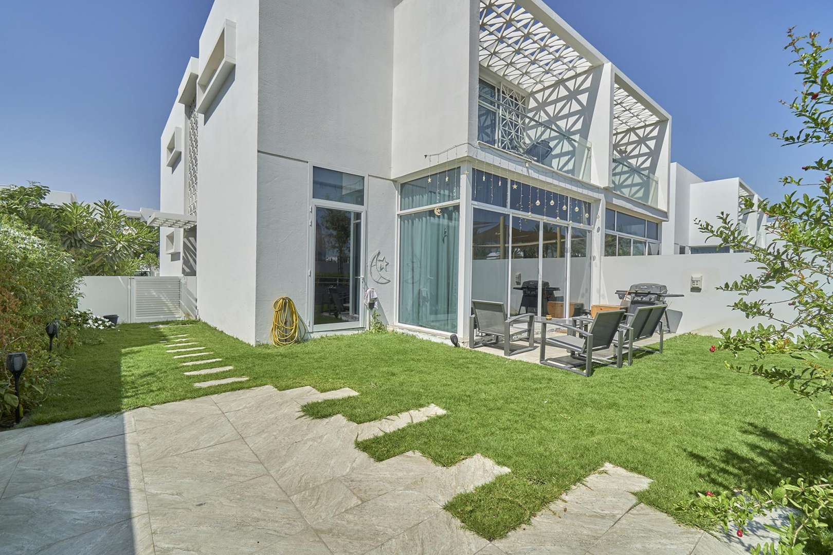 There is something genuinely welcoming about the whole layout here. With a plot area of 3278 square feet and a built up area of 2603 square feet, it never ends up feeling either too much or cramped like some homes do. The reception area greets you first and it sets the tone straight away. No need to show off here. The living space opens up in a way that feels relaxed and practical so whether you have family over or just want to spread out by yourself, there is plenty of room. The L shaped garden wraps round with just enough trees and hedges to let you feel a bit private and every now and then you might hear the park sounds nearby. In fact, you actually get a park view so there is always something green to look at through the windows. A nice reminder you are not far from nature even in Dubai.
