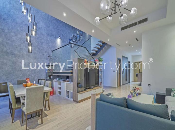 Some homes just sort of slow you down the second you walk in. This four bedroom townhouse in Hyati Avenue at Jumeirah Village Circle does that. The first time I stepped inside I actually paused for a minute by the front windows. It is bright in a gentle way. Not the kind of light that wakes you up too early but the kind that almost makes you want to take your shoes off and stay awhile.