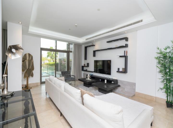 Some homes just slow you down the moment you walk in. This four bedroom duplex townhouse at The8 on Palm Jumeirah does exactly that honestly. I stood in the entry and for a second I almost forgot why I came there. Maybe it is the way the light pours through those high ceilings or just knowing the private beach is right outside waiting for you. It has that open breezy Dubai island feeling you hope for but rarely find. There is just something about it.