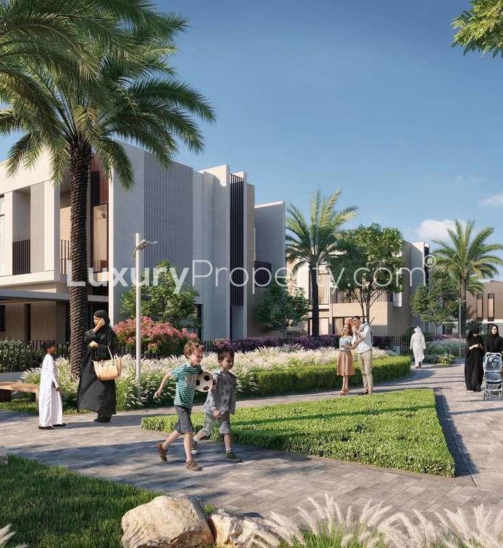 Sometimes these new villas are all white tiles and echoey in a bad way. Here you actually feel warmth from the finishes. And yeah the views make you remember you are right next to the greens. Every now and then you will see families walking with strollers or just neighbors waving across the road which gives it a community feel that older Dubai neighborhoods used to have.