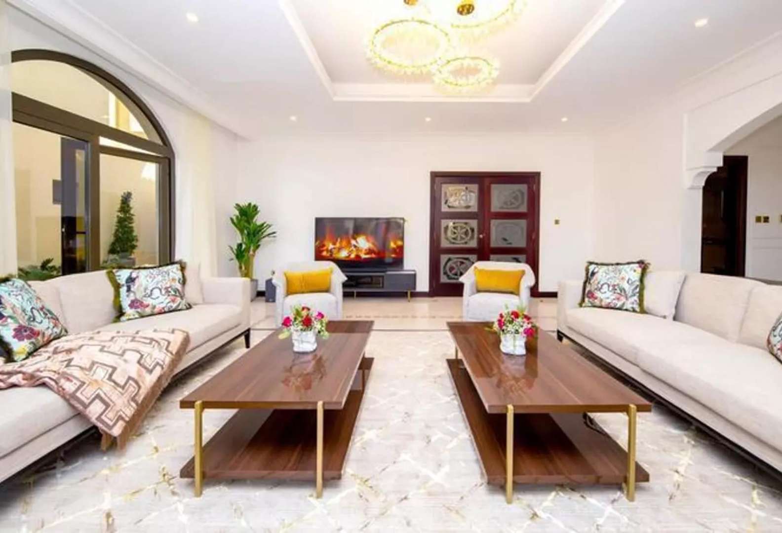 From the living room you drift out to the outdoor deck. That space is where you start picturing sunset drinks or lunch with people just hanging out while kids wander between the pool and the garden. Having a private pool is already a win but this one has heating as well which is quite handy if you are in Dubai during the cooler months. The best thing is you get that mix of privacy and a wide open view. You can hear a few birds in the evening and sometimes you even catch the smell of the sea drifting up from the shore.
