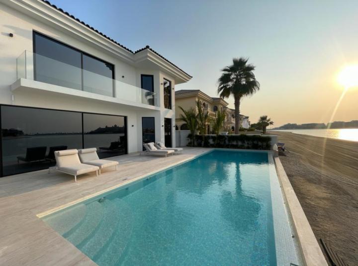 Honestly, some villas in the Palm can feel kind of formal, but not here. The living and dining areas connect in a way that just feels easy. It is open and wide, but there is a real sense that you can fill it up with people or just lounge quietly with the doors open to the garden if you want. In the evenings, the fireplace actually feels like it would get used while you hear the sound of the pool outside. Sometimes you get a whiff of the sea and, if it is winter, you get that sharp Dubai evening air coming in.