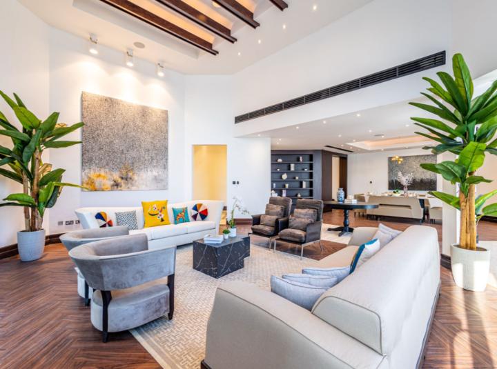 Some homes slow you down before you even figure out why. I stepped into this four bedroom villa on Palm Jumeirah's Frond D, just off the sand, and honestly the sunlight alone might catch you first. It runs through from one end to the other and makes everything softer than you expect, especially if you have just come from the main road where Palm traffic sometimes feels like too much. Here, you hear the water and a few birds and once in a while, laughter drifting over from another garden. The whole place just feels easy from the moment you close the door behind you.