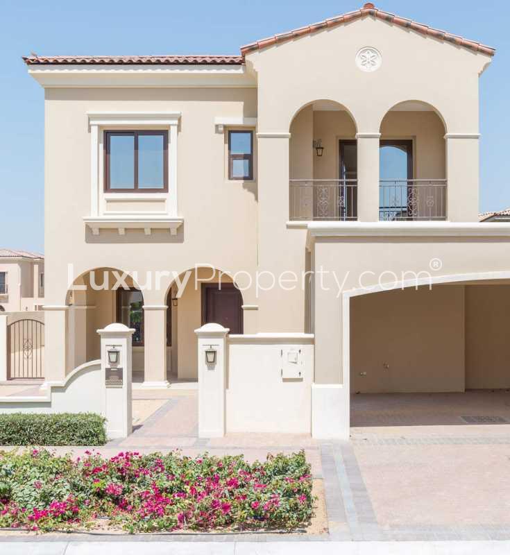 This particular villa sits in Lila which is a sub community in Arabian Ranches 2. Emaar designed the whole area so that it feels like its own quiet part of Dubai rather than just another villa community. The streets here genuinely curve in a way that makes you slow down. You see terracotta rooftops and a soft Spanish vibe as you drive up. I noticed right away that the vibe is warm even before you're inside. It is not unusual to walk around and hear kids laughing or the sound of families catching up. Once in a while even the smell of fresh bread from a neighbor's window drifts across the street if you happen to be out in the morning. People nod hello and you get that true lived in neighborhood feeling in Lila every day.