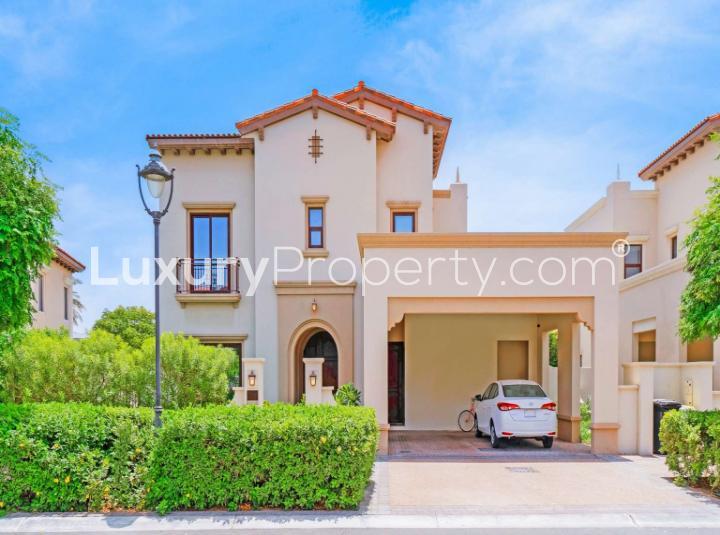 Some homes just seem to welcome you in from the moment you step inside. This four bedroom villa for sale in Rosa at Arabian Ranches Two has that feel and honestly I did not expect it to be quite so inviting. Walking in, you get hit with a sense of openness that is rare in most Dubai villas. Standing in the living room, you can easily picture evenings where friends are talking over dinner on one side and someone else is flopped on the sofa with a cup of tea from the kitchen. There is a good sense of privacy here too which is not always the case with community villas in Arabian Ranches Two. It might surprise you how roomy the plot is you get one of the biggest garden spaces in Rosa so there is actually room for kids to run around or just tuck a chair under the trees and sit for a while. I spent a minute on the upstairs balcony just watching the sun peek through the greenery and honestly it made me think this is one of those spots where breakfast outdoors could easily become a real habit.