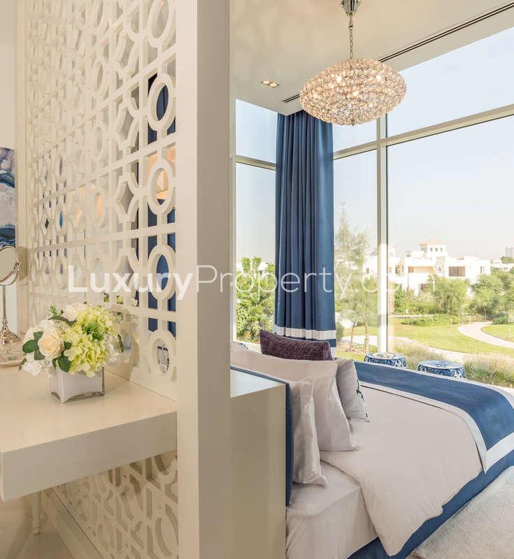 Upstairs there is a tucked away study room that opens onto its own terrace. When you need to work or get some quiet it is a perfect spot. Another bedroom sits close by with its own en suite. The master bedroom though, really caught my eye. It gets beautiful early morning sunlight and opens onto a private balcony that looks right across the landscape views Al Barari is famous for. There is a good sized walk in closet and a master bath that feels more like a little spa than just a regular bathroom.