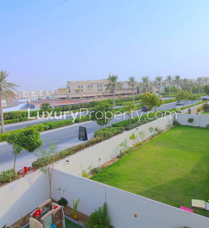 You get a lot of space here with a built up area of just over four thousand square feet which already feels comfortable before you account for the big plot that stretches to nearly seven thousand square feet. Its a single row home too so you are not peering right into somebody else's kitchen while you decide how to start your morning. The garden honestly has enough space for a game of cricket if you wanted though you could just as easily keep it green and simple the way these villas tend to look best. Yasmin is unique even if you have looked at other Arabian Ranches or Ranches Two villas before. It just has this slightly more upscale feel without being over the top. Islamic style touches show up in the arches and lines when you walk around and the greenery feels intentional not just stuck in here and there.