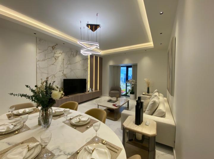Right away you will notice the way this place feels open not just bigger but also a little free. The floor to ceiling windows pull in so much natural light it genuinely brightens up mornings especially if you spend time drinking coffee in the living room and just watching the city start to move. The open plan kitchen really does look like one you might actually cook in not just a spot to heat something up. I noticed the Siemens appliances immediately and those marble surfaces run cool and smooth under your hand, little details but they add up. The wardrobes have that smooth closing glide and you can actually see yourself putting your things away and not looking for more space. Everything just fits.