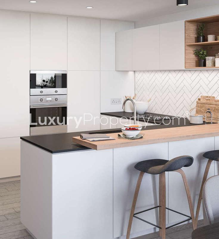 The living area is open and it feels bigger than you think. Even with just one bedroom, you could cook for real in this kitchen. Not one of those fake little corners with a microwave and nothing else. The finishes are all smooth. There is actual wood. The stone details are easy on your hands and look great in the sunlight, especially in the late afternoon. Sometimes you can barely tell where the living space ends and the kitchen begins. You can imagine having friends over and talking while someone cooks, since everything flows together. If you want a proper meal or just to order something in, it feels like you would use the dining table more than your lap. Every part of this apartment is thought through for day to day living. It is not just for the photos.