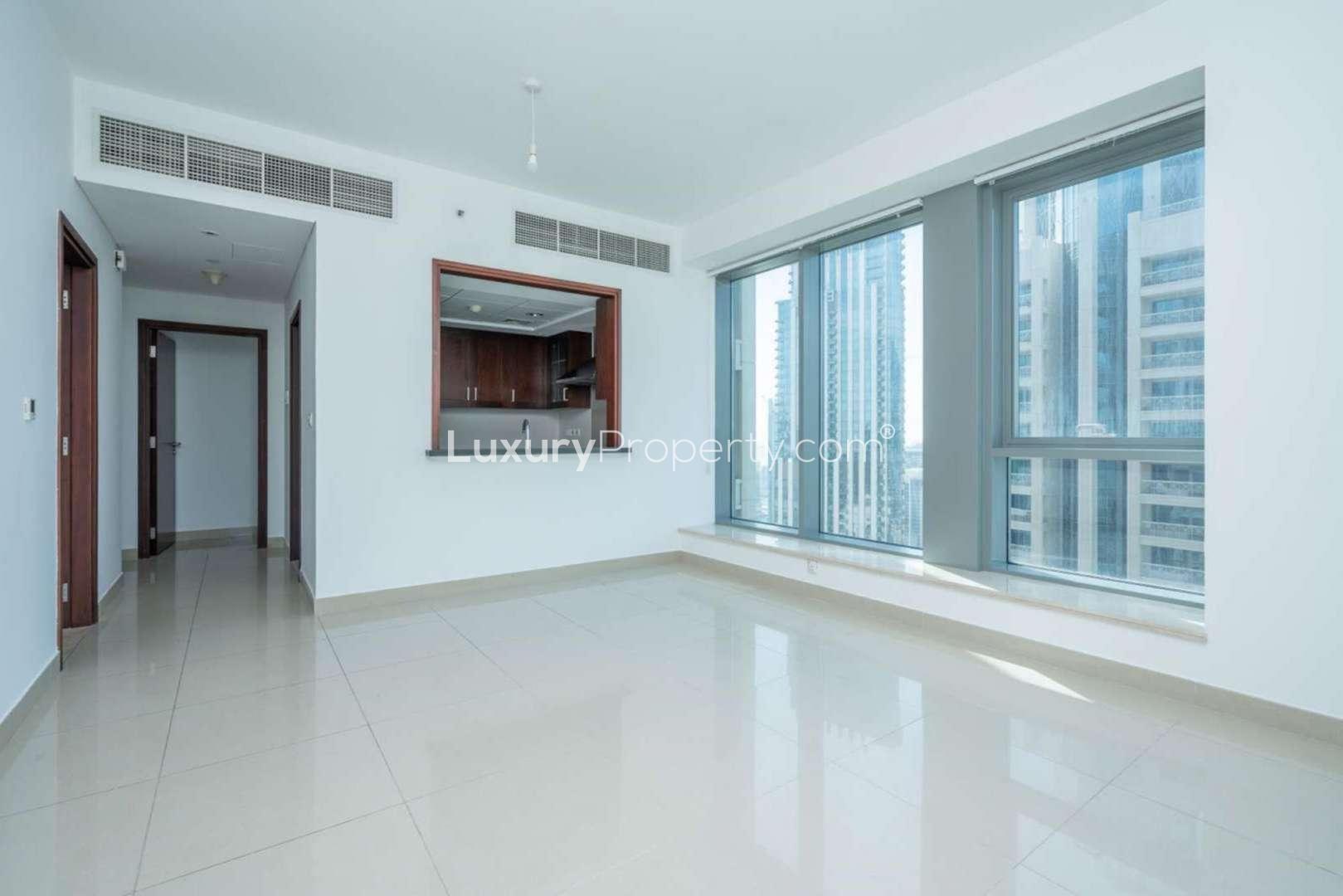 Inside, you have got a space that feels much bigger than most one bedrooms, partly because of the open living and kitchen area. It is one of those kitchens you can imagine actually cooking in, not just heating something up. Open, but you can chat with someone while you chop veggies or pour a cup of coffee. The living and dining area is nice for having friends over or just sitting back at the end of the day. There is a big balcony too which you end up using more than you expect, honestly, just because the views across Downtown Dubai are kind of special at sunset. Every once in awhile you think about how close Burj Khalifa is and it still surprises you.