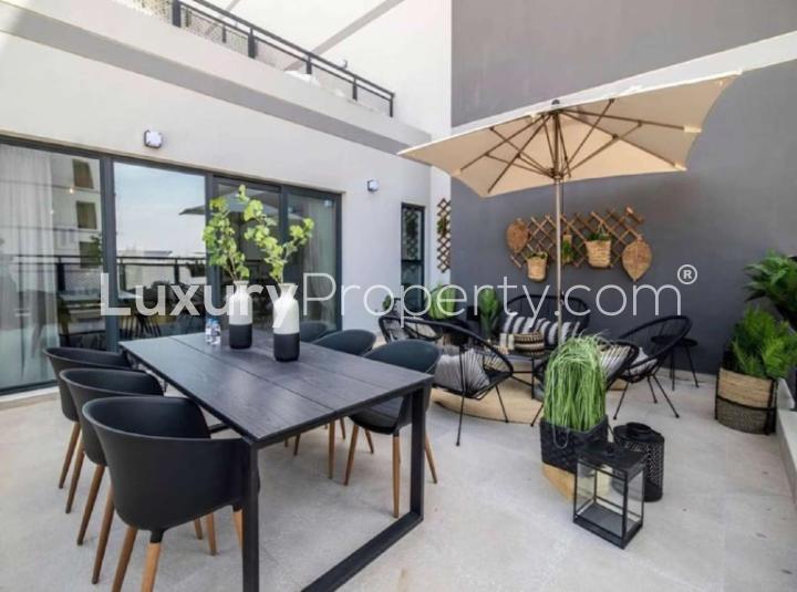 Something I really liked is that the living room kind of blends straight into the balcony. You might find yourself out there in the evenings just soaking up those community views or having a late coffee. The balcony is large enough for a table and a couple of chairs and honestly the sunsets are pretty good from here. The nice thing about Olivara Residences in Dubai Studio City is that you see a few families out and about, and sometimes kids biking or people just walking their dogs. It's a real community feel, not just a cluster of apartments.