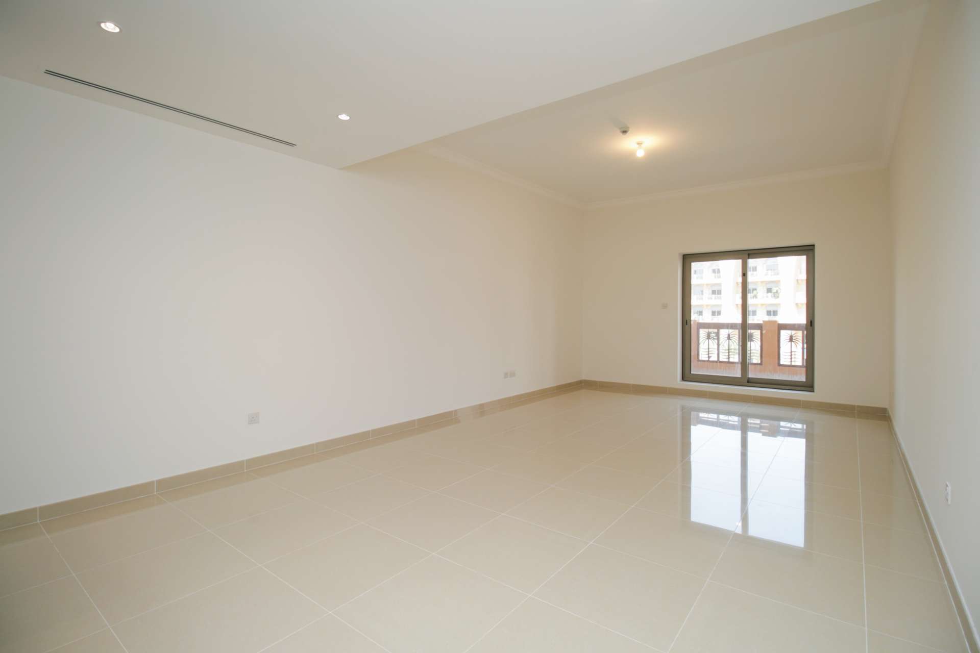 Some places just have a way of slowing you down the minute you walk in. This one bedroom apartment at Sarai Apartments on Palm Jumeirah really does that. I stood out on the balcony for a few minutes the first time I visited and just watched the garden below — nothing too busy, just the sun moving over the trees and a glimpse of the sea in the background. It is honestly so calm that you almost forget about the city out there.