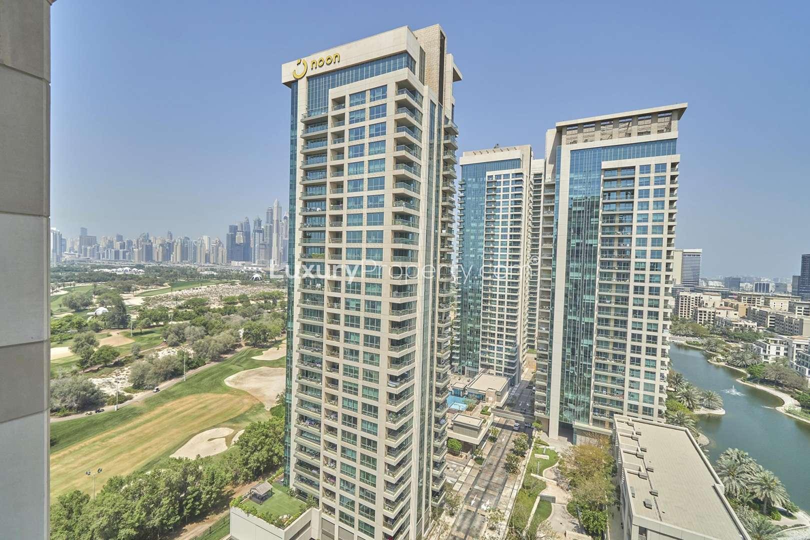 Some places just make you stop for a second when you walk in. This one bedroom apartment in Tanaro, The Views, does exactly that. You come in and immediately the light is different here, you get all that easy Dubai sunshine spilling in across the floors and if you look up you see this big green panorama. It is golf course and lake views as far as your eye goes. I actually found myself just standing by the window for a moment, watching the way the golfers move about and how peaceful everything seemed. It feels quiet even though city life is still so close.