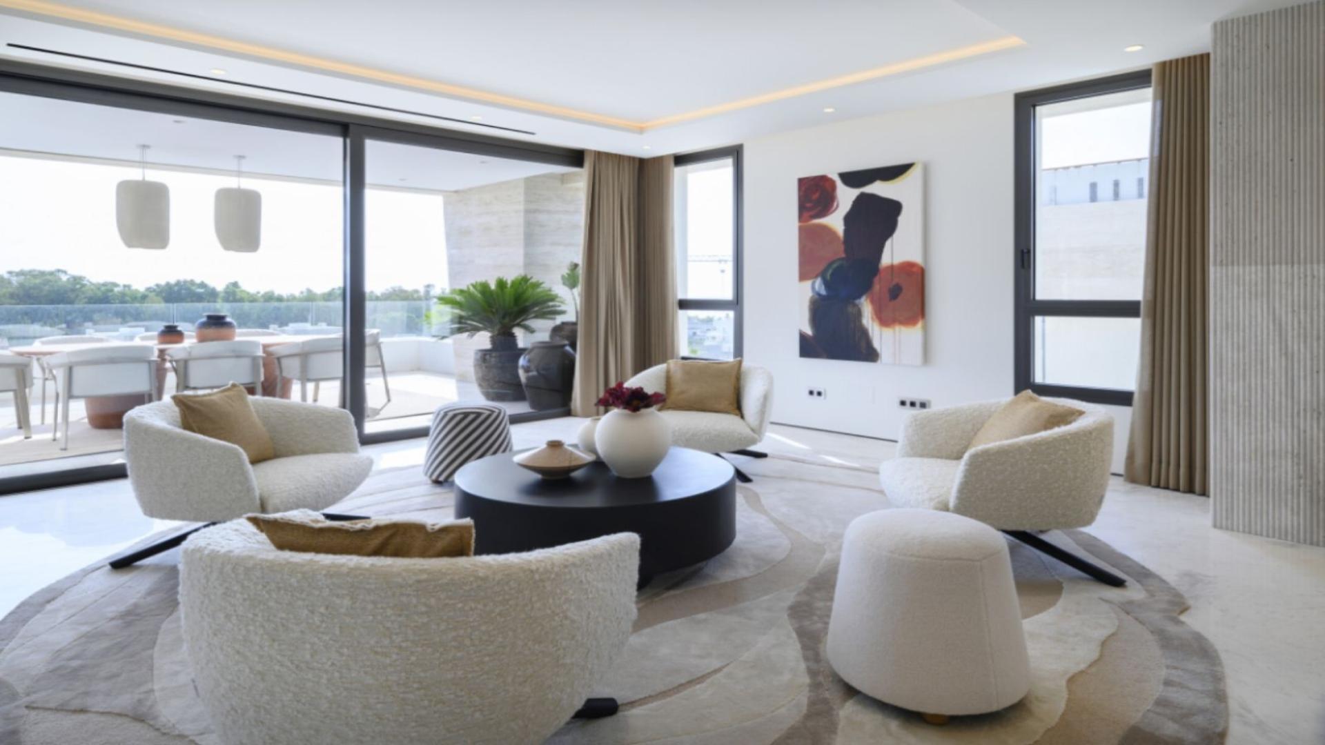 This penthouse duplex feels like the kind of home where the first impression really matters. You step in and there is already a sense of scale, not just because of the size, but because of the way the space opens up. It feels bright, polished, and very much made for someone who wants Marbella living with a little more drama than a standard apartment can offer.