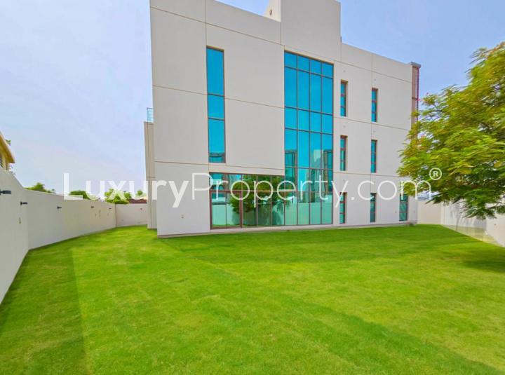 If privacy is important to you, you'll notice how the villa sits along the park and faces the racecourse and Meydan Hotel. You don't get people looking into your garden and the corner spot really puts a bit of breathing room around you. It feels tucked away, but still part of a neighborhood that is recognized for being exclusive and peaceful. There are security gates so it stays quiet and you'll probably see some neighbors heading out for walks in the evenings or kids biking along the paths when the sun goes down. No need to worry about busy roads.
