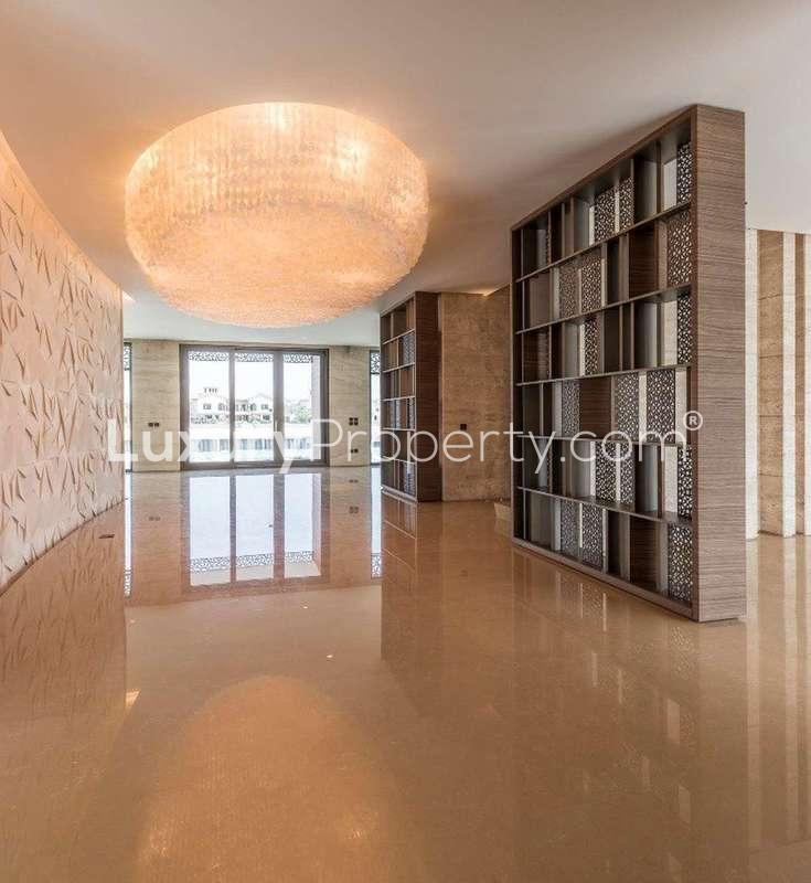 There's something different about this six bedroom Signature Villa here on Frond B of Palm Jumeirah. Maybe it's the way the light hits the rotunda when you walk in. I remember standing in that entrance for a minute, just looking up at the chandelier, and honestly it just felt impressive without even trying. This is one of those Great Rotunda type villas, so you get this feeling of openness and calm as soon as you're inside. The spaces are big but not intimidating. They feel like real rooms where you'd actually spend time with family or friends and not just pass through.