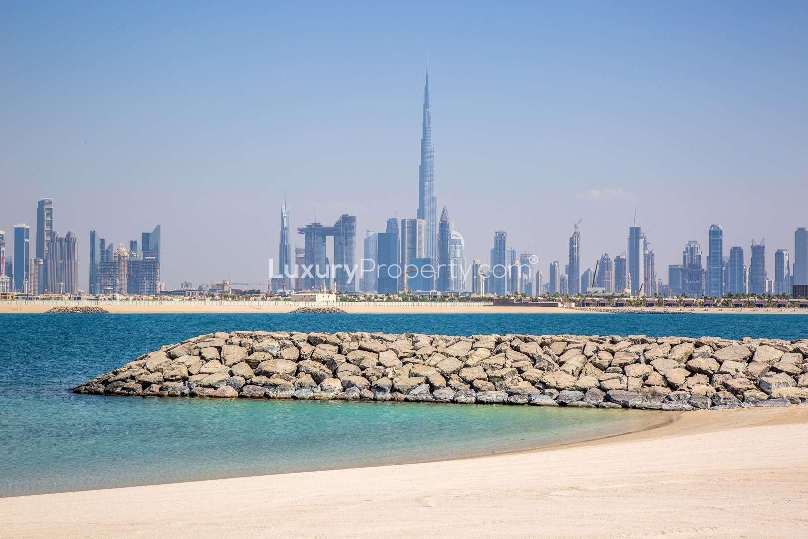 I stood along the edge of this plot for a while last week and you really do get a sense of how open and flexible this space feels. You can walk to the beach or shoot for a quick run along the coastline any time you want. Sunsets are a bit of a thing here and there are evenings you just find yourself watching the last bit of light catch on the Burj Khalifa way off in the distance. Even the skyline views are pretty special, honestly. There are just so many options. Some people will want a pool, guest house, gym, the works. Some might want something simple but big and open.