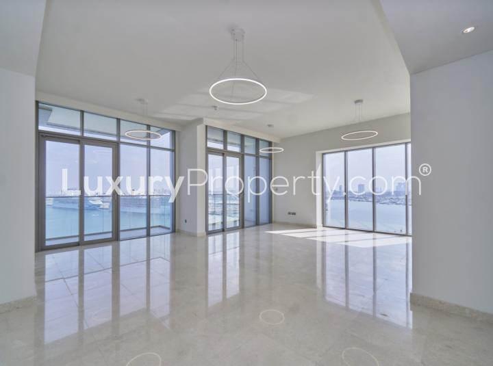 Sometimes you walk into a place and the light just feels different. This three bedroom apartment at Anwa in Dubai Maritime City had that effect for me. I found myself pausing by the windows even before I remembered to actually look around and notice the space. You get this sense of openness right away because the living area is just massive and the ceiling actually stretches up two levels. It is not something you see every day and honestly you catch yourself gazing up for a while. There is that big balcony too. When you step outside for a few moments all you hear is the sea breeze with the city sort of glimmering in the background. On some afternoons you look out and watch ships moving across the water or sometimes a few birds drifting in the sky. I always feel like places with big windows just have a calmer energy and this one really makes you slow down before you get to anything else.